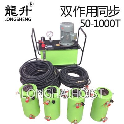 本系列雙作用同步千斤頂,配套的是“LSJF型雙作用分離式千斤頂”,用戶可按實際狀況選配不同型號、規(guī)格、數量的50T、100T、200T、320T、500T、630T、800T、1000T千斤頂,同時可以配置1.5KW、2.2KW、3KW、3.75KW、5.5KW、7.5KW、13KW等不同規(guī)格的超高壓電動泵站,配備不同長度的高壓油管和合適的分配閥,采用一泵拖多頂的方法滿足適應施工現場的作業(yè)要求。 【產品名稱】雙作用同步液壓千斤頂 【產品品牌】龍升品牌 【產品規(guī)格】50T-1000T,行程100~250mm 【產品保質】保質期1年 【是否定制】提供各種規(guī)格、各種行程、各種數量的千斤頂定制 【產品分類】同步千斤頂 【典型應用】廣泛適用于大型建筑工程設備,構件的同步起頂、調整及鐵路、公路、橋梁工程的架設 【注意】適用于均勻重量和平整底面的設備,如果不是均勻重量的需要特殊定制
